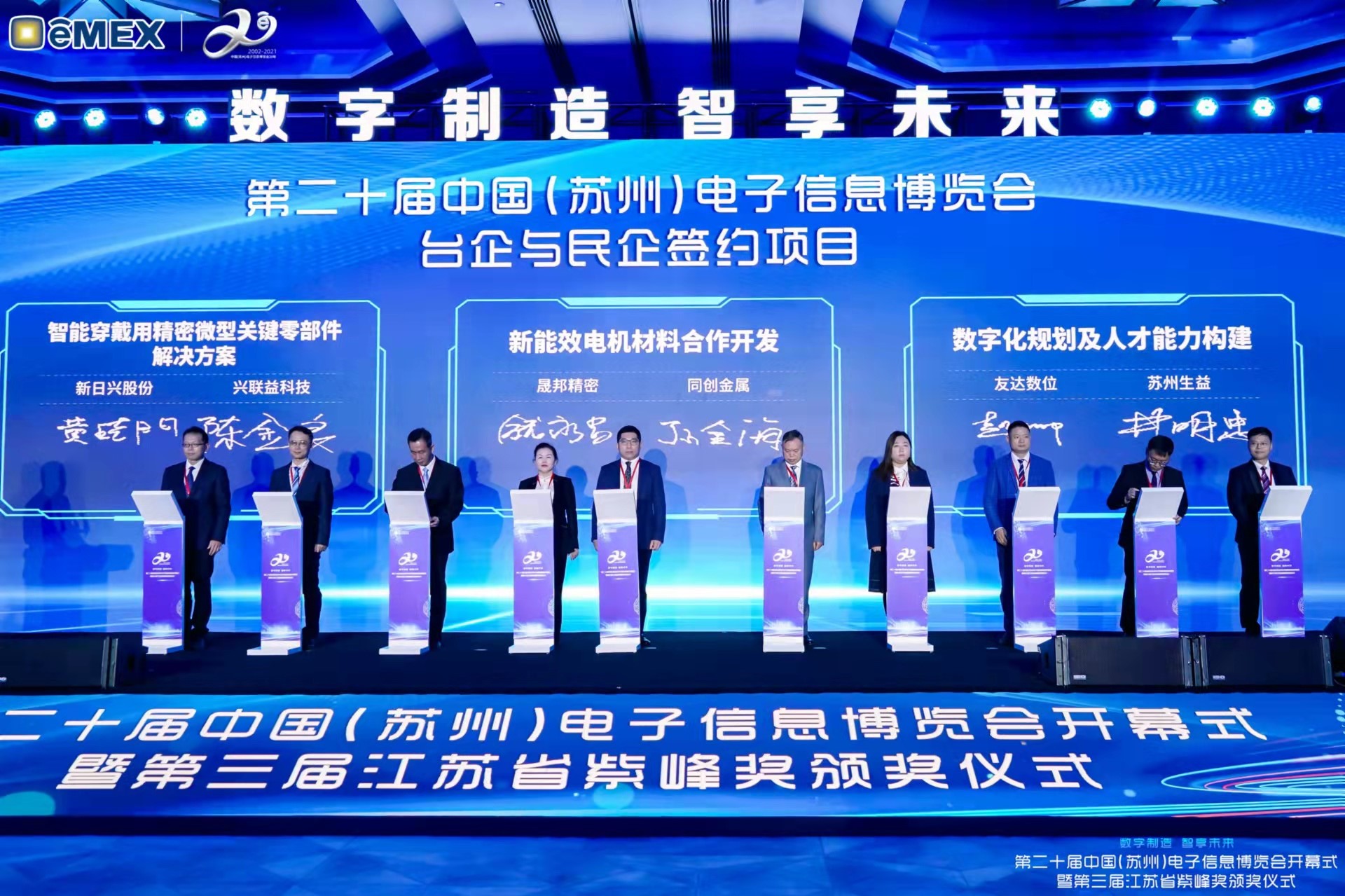 beats365再获紫峰奖殊荣 电博会开幕式当天也是第三届江苏省紫峰奖颁奖仪式,省台办、工信厅、商务厅、苏州市相关领导均出席并颁奖。该奖项为表彰对江苏高质量发展做出积极贡献的在苏企业,由江苏省政府专门设立。beats365光电 (苏州) 总经理郭振明代表上台领奖,这也是beats365苏州连续三次蝉联紫峰奖 “出口贸易领军企业奖”。beats365数位总经理赵丽娜女士,也参与本次开幕式,上台为本地化赋能签署战略合作协议,将优质服务资源集合、下沉到更多细分行业,为更多地区的制造企业提供数字化转型服务。 |